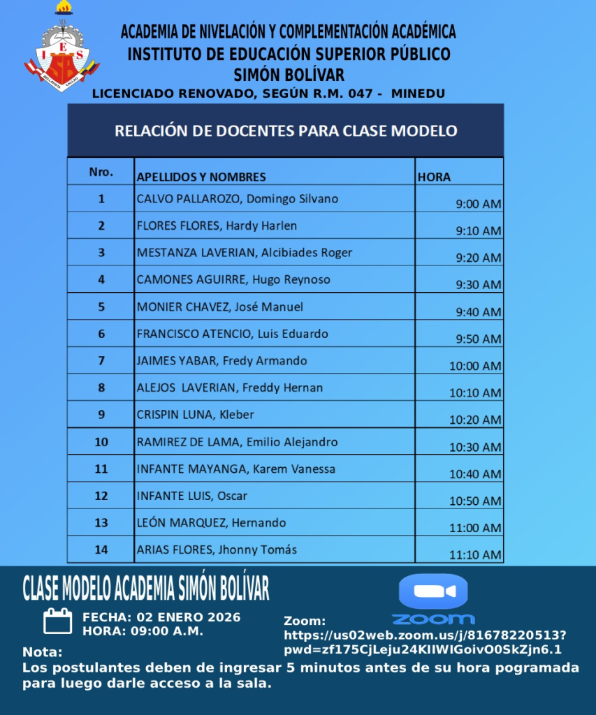 Home Comunicado ACADEMIA 2026 – RELACIÓN DE DOCENTES PARA CLASE MODELO ComunicadoACADEMIA 2026 – RELACIÓN DE DOCENTES PARA CLASE MODELOadmindiciembre 29, 2025